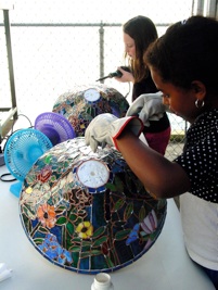The 8th graders created mosaic designs depicting African Animals and Adinkra symbols, which have been used for centuries in Ghana and the Ivory Coast. Their mosaic designs have been used to decorate 2 pots, suitable for indoor or outdoor use.