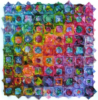 Precision – Balance – The Power of Repetition! 6th graders studied the art of origami unit folds with legendary artists, Lilli Lanier and Aiko Cuneo. The art of math comes alive in 3D!