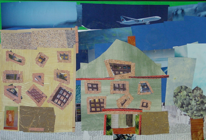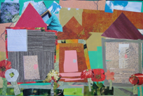 A colorful collage of Lissa’s class in the Rooftop garden — inspired by Romare Bearden and other artists. Approx. 5’ x 5’